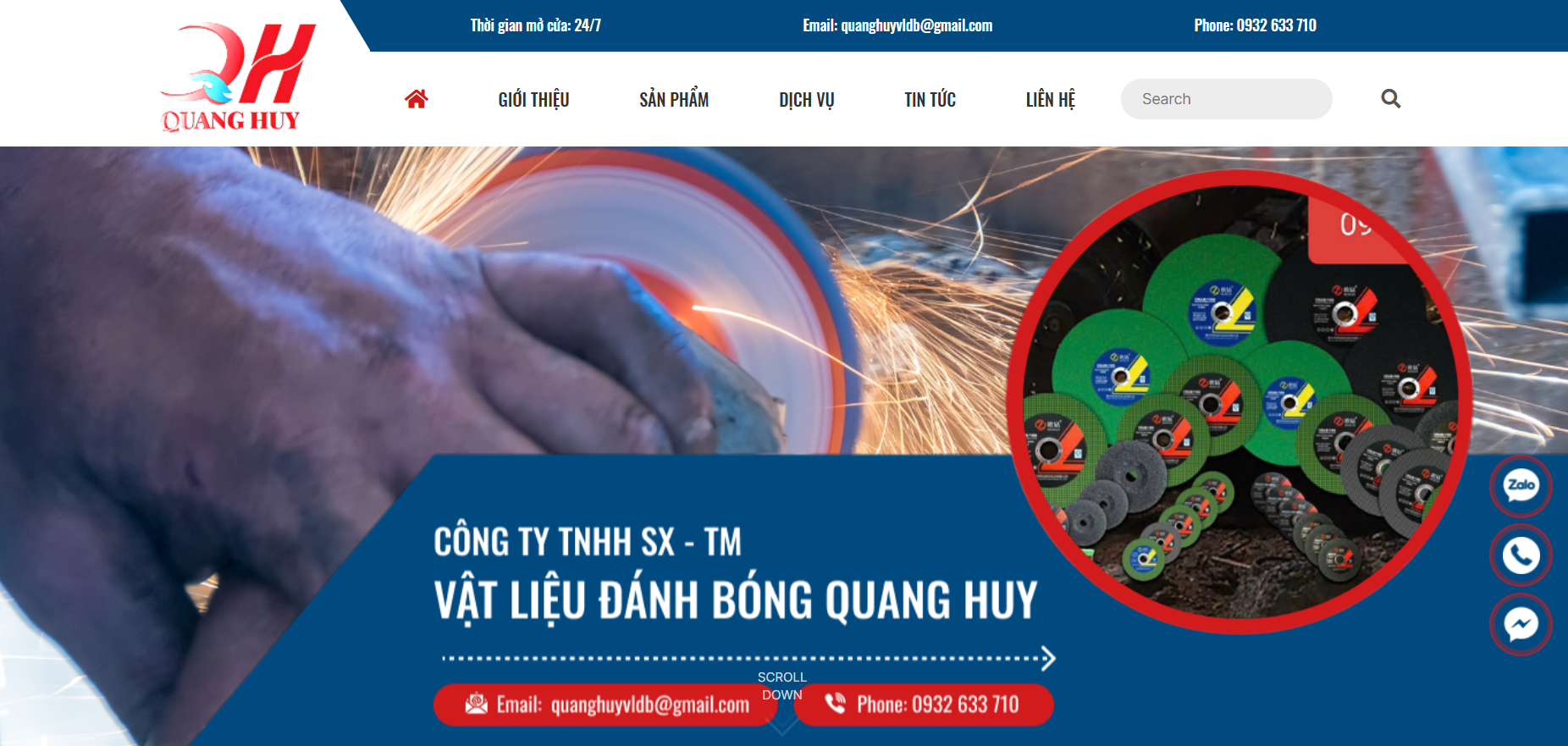 Công ty TNHH sản xuất - thương mại vật liệu đánh bóng Quang Huy là một trong những đơn vị hàng đầu tại Việt Nam chuyên sản xuất, cung cấp và phân phối các loại vật tư đánh bóng kim loại. Với mong muốn vươn tầm thị trường quốc tế, trở thành doanh nghiệp bậc nhất tại Việt Nam trong ngành sản xuất vật liệu đánh bóng, Quang Huy hiểu được rằng cần phải tìm kiếm một cách thức quảng bá phù hợp với thời đại. Vì thế, sau thời gian mày mò tìm kiếm đối tác, chúng tôi quyết định tin tưởng và lựa chọn AnHi Solution thiết kế website cho thương hiệu của mình.